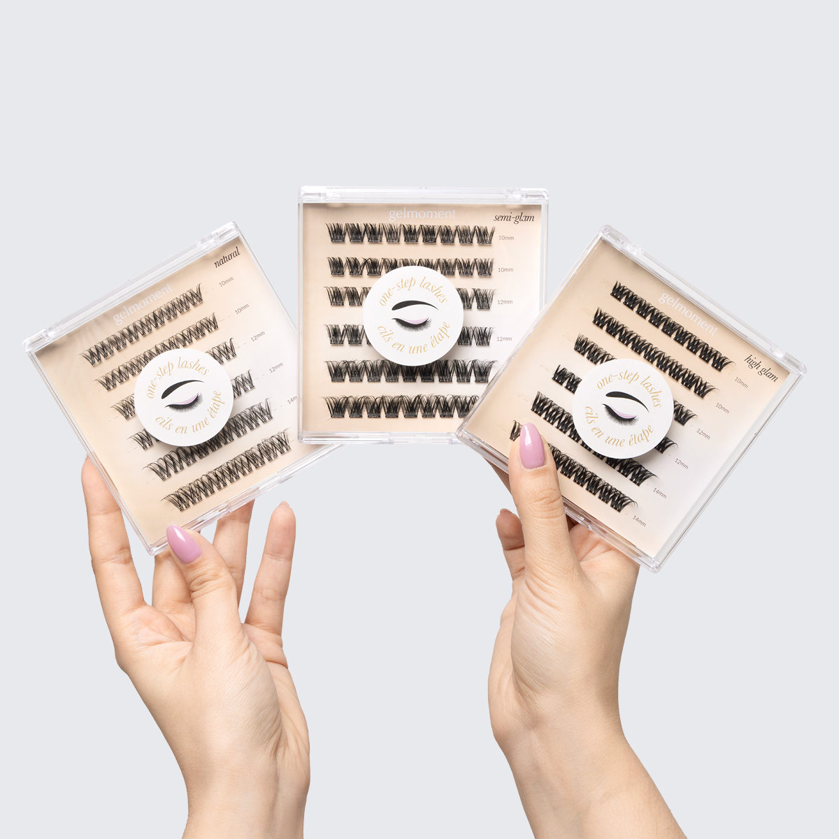 Gelmoment one-step lashes are your easy solution to adding length, volume, and drama to your eyelashes with a hold of 24+ hours. These individual lash clusters come in a variety of lengths and styles, providing you with full control over how dramatic of a look you desire. Plus, our lashes come pre-glued, making the application and removal processes as convenient as possible for beginners and enthusiasts alike.