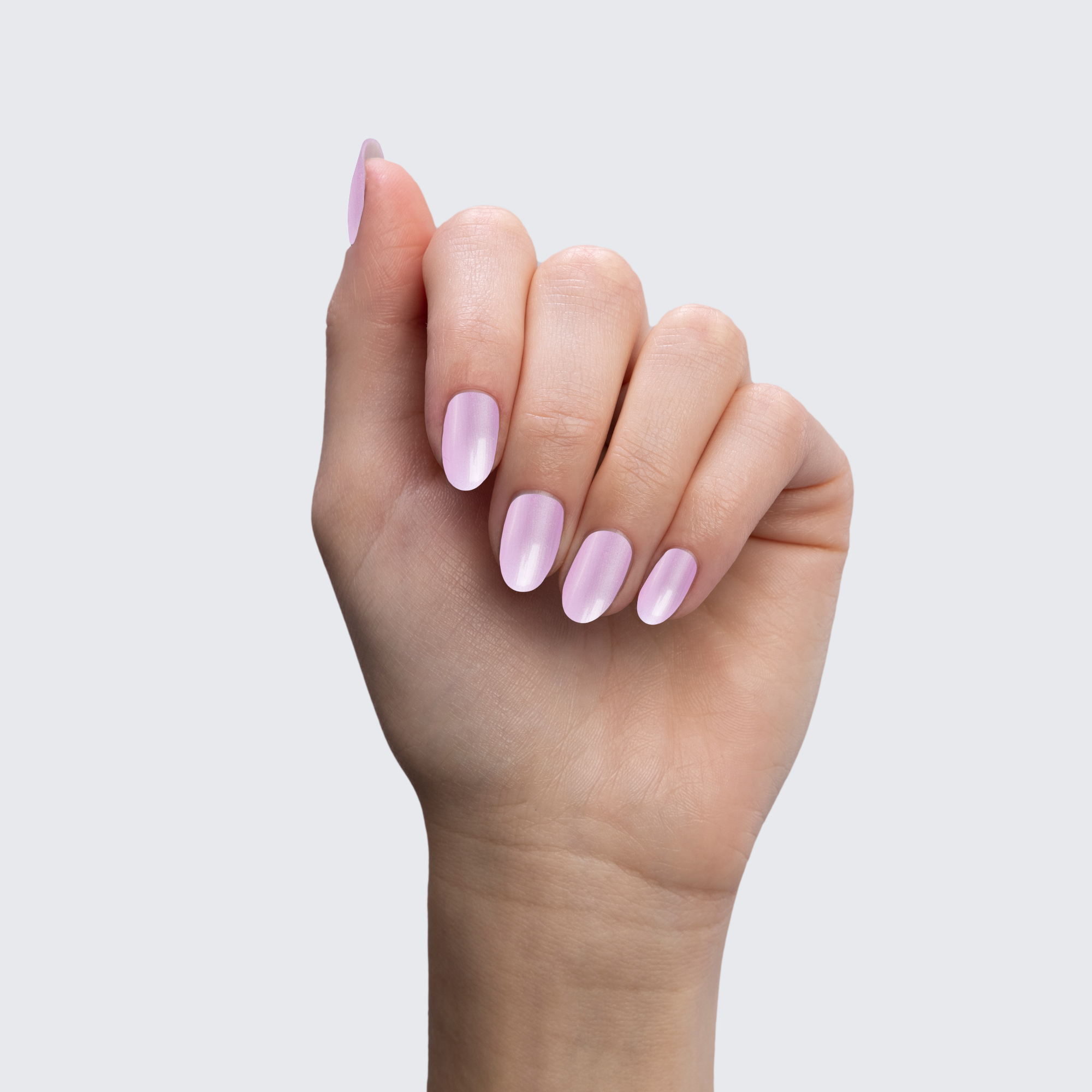 Baby pink. Pastel. Pearl finish. Opaque. Cool undertone.