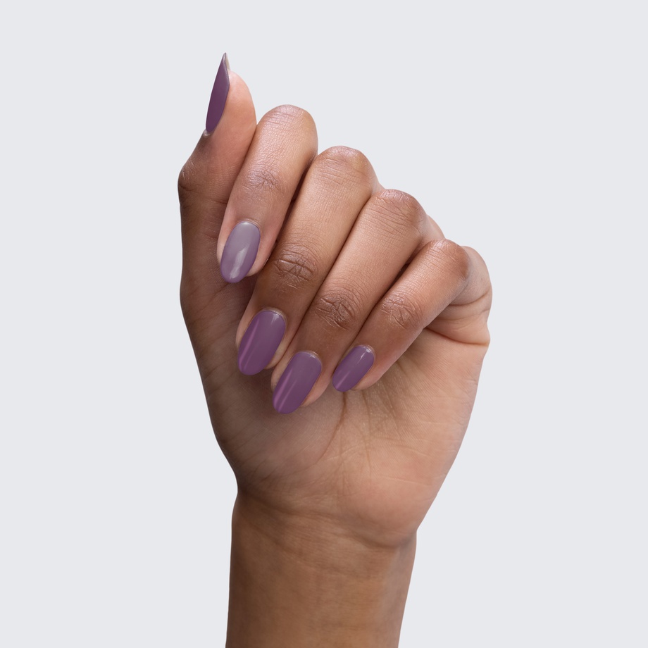 Dusty purple. Muted. Medium. Opaque. Warm undertone.