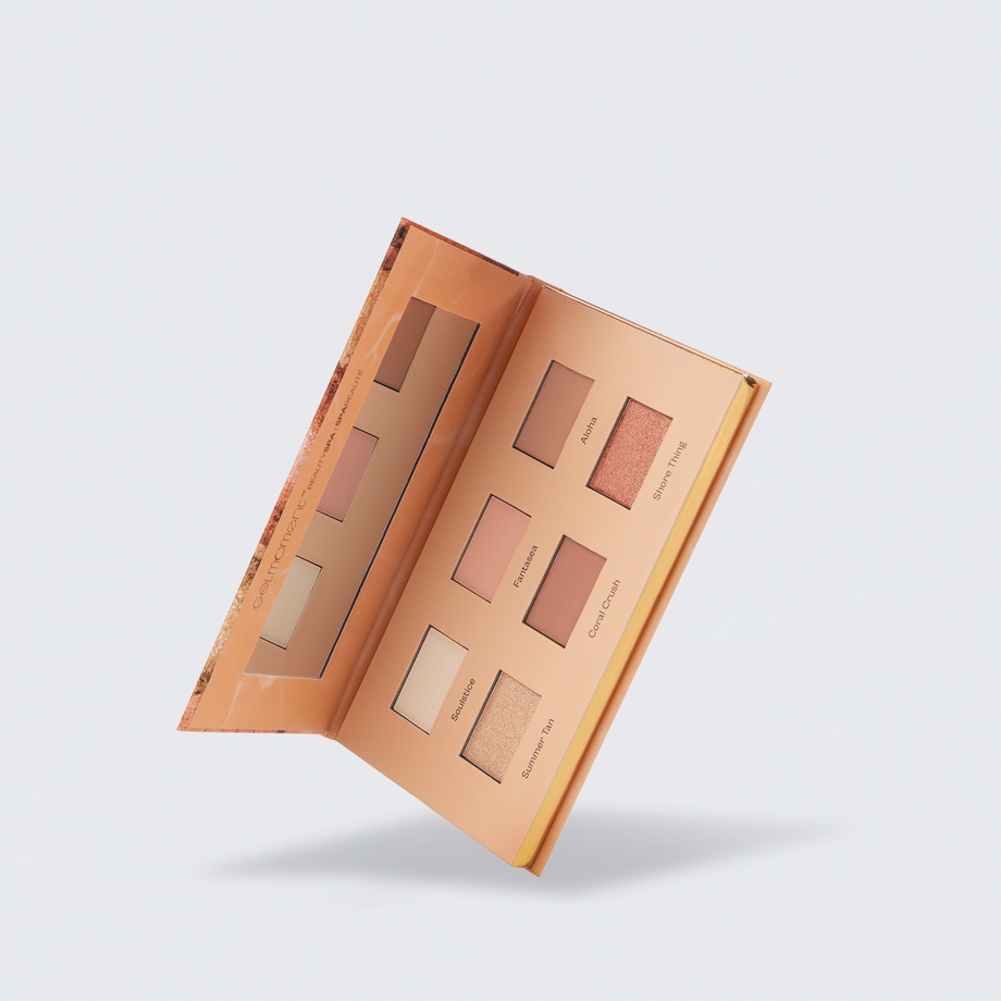 Have the softest gaze in the room with the delicate shades of TOUJOURS Peach Palette: Soulstice, Fantasea, Aloha, Summer Tan, Coral Crush, and Shore Thing.